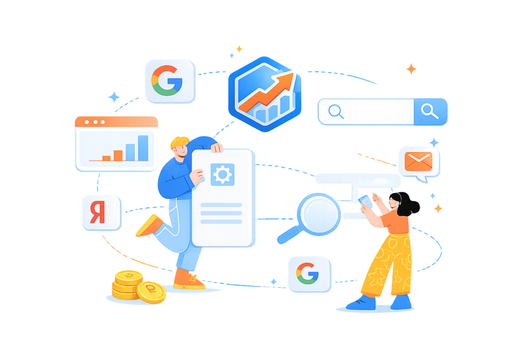 Основной фокус — Яндекс. Google подключается при необходимости.